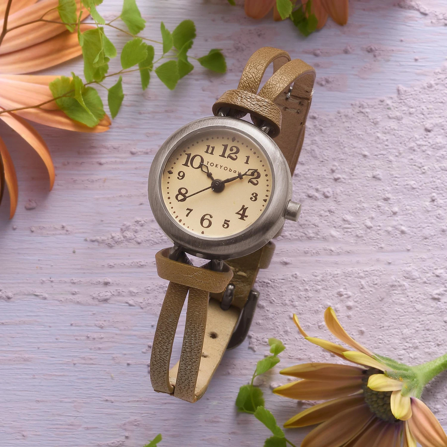 Far from frilly, this feminine watch complements its scaled-down, vintage-style ivory face with a slender, split band of taupe leather. Antiqued metal case. Fits 5-1/2″ to 7″ wrists, 3/4″ dia.