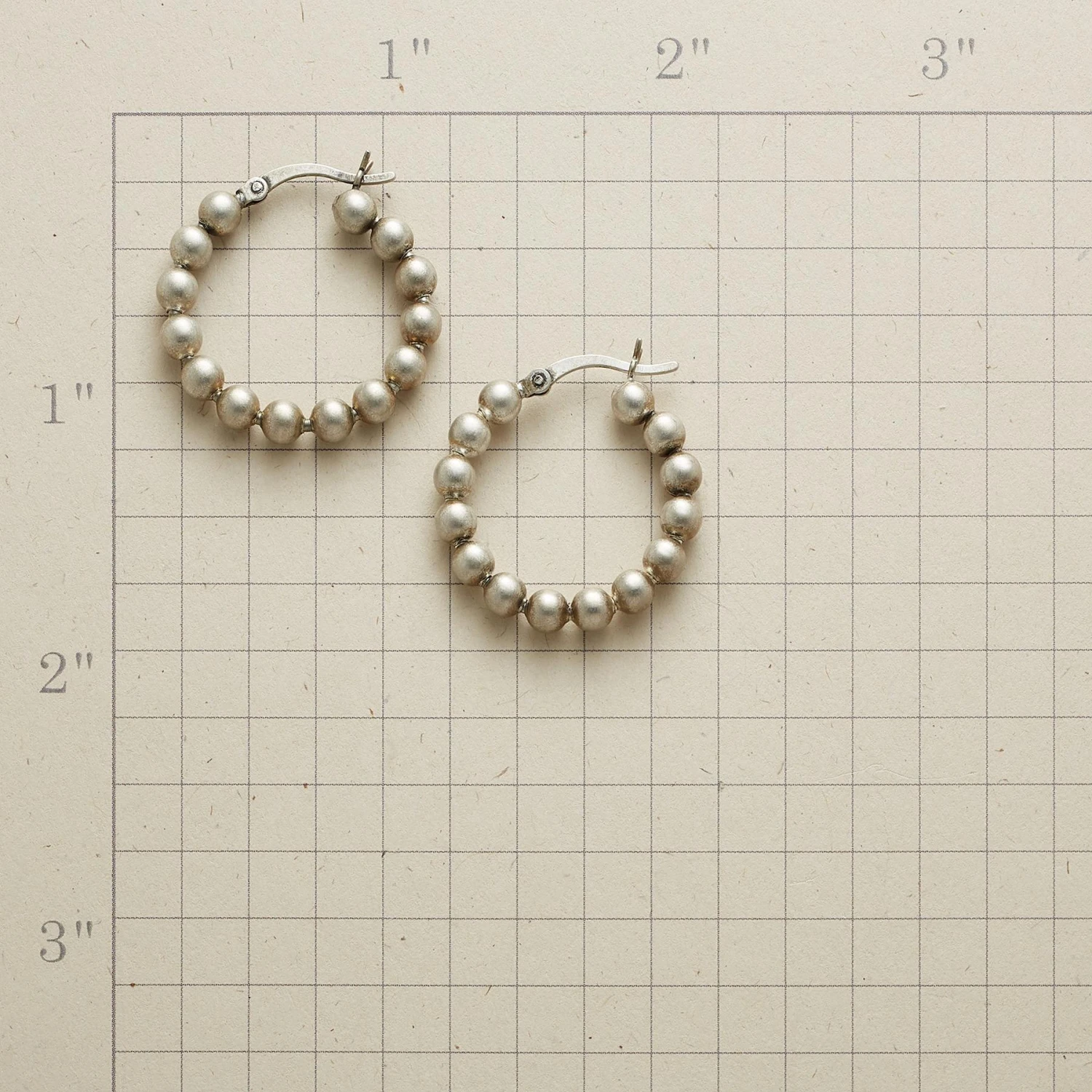 Classic hoops with a twist, made from bubbly beads of sterling silver. Lightly antiqued for vintage style. Snap-down posts. Handcrafted. Exclusive. 1″ dia.