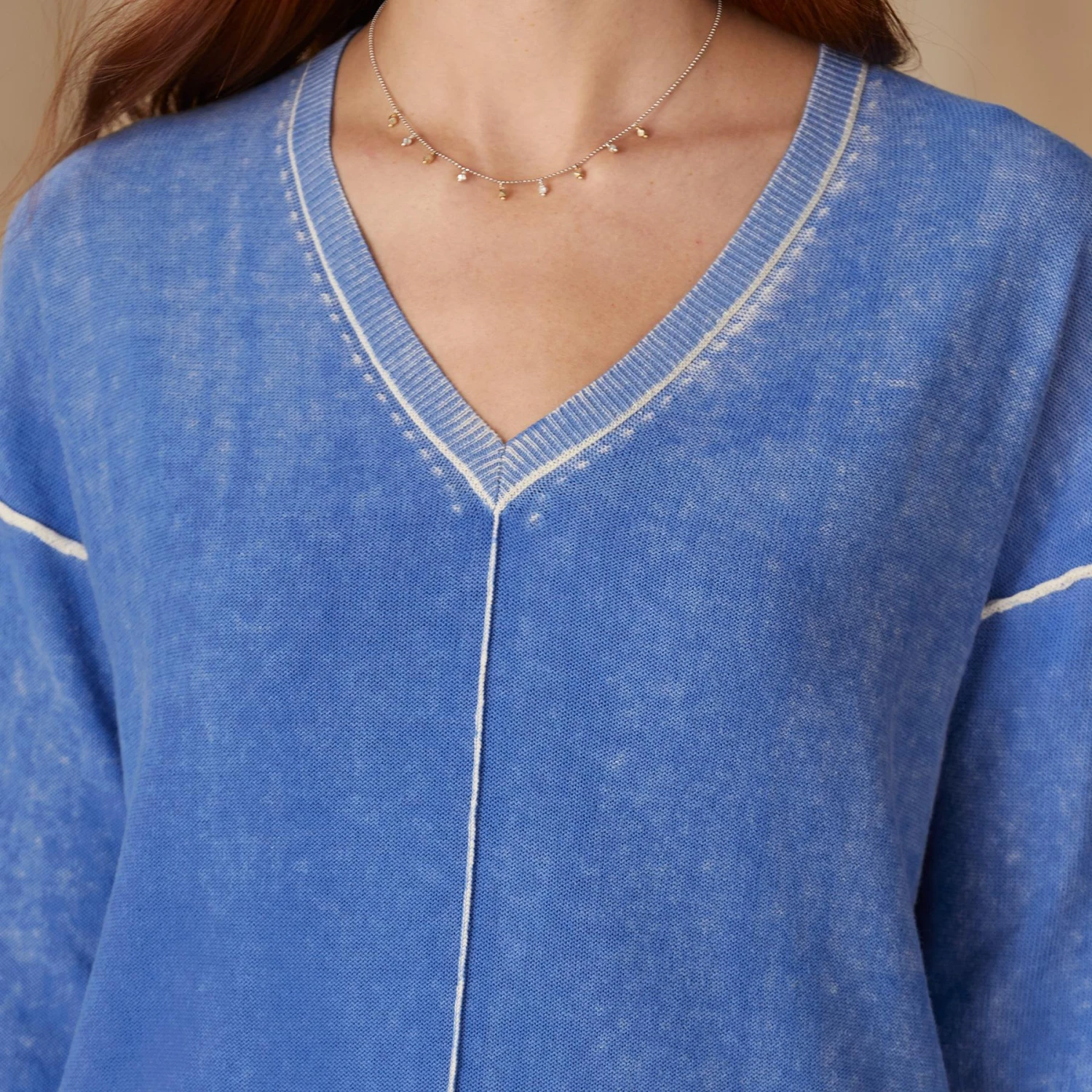 Lightweight V-neck faded for a vintage feel. Exposed seams, rib trim. Cotton. Hand wash. Imported. Exclusive. Sizes XS (0 to 2), S (4 to 6), M (8 to 10), L (12 to 14), XL (16 to 18), XXL (20 to 22). Approx. 25″L.