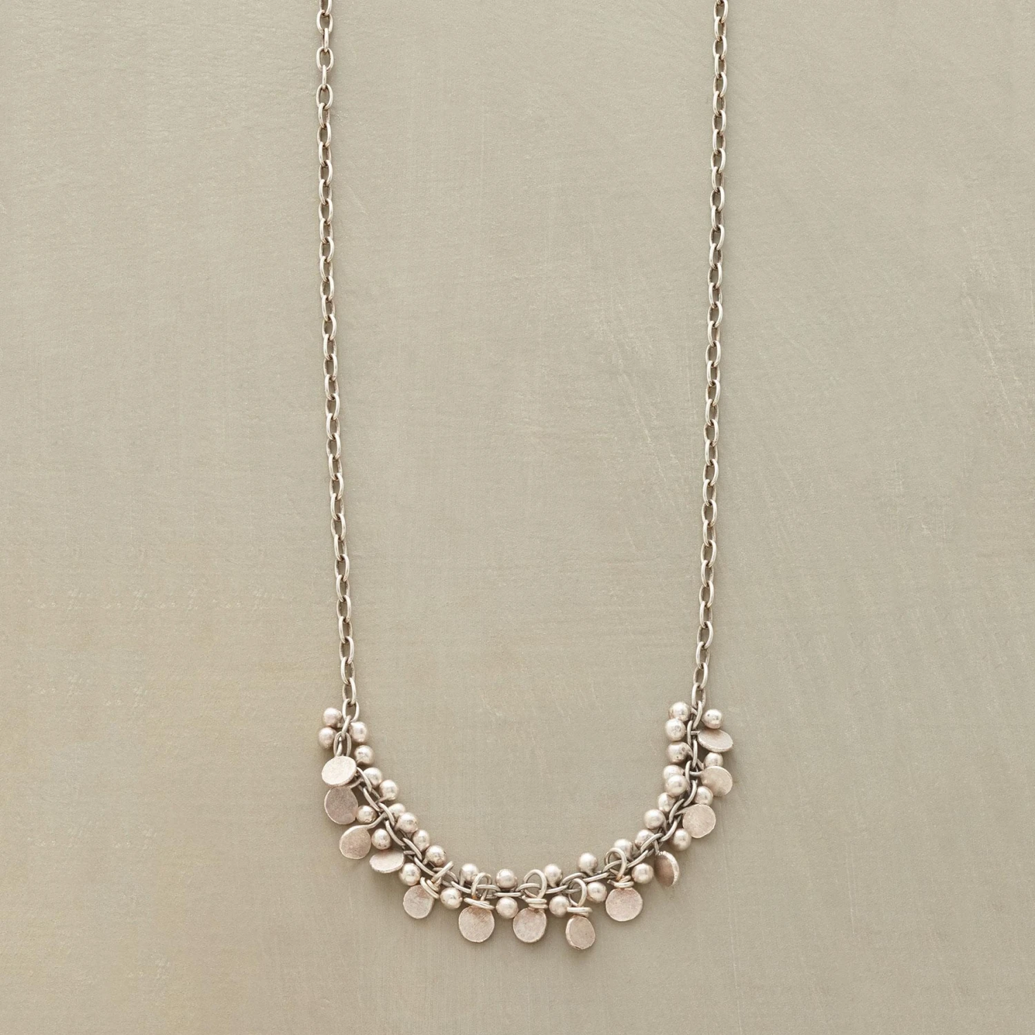 Layered or solo, this sweet sterling silver bead and disc necklace with its frill of sterling beads and hammered discs is pure loveliness. Sterling silver clasp. USA. 16-1/2″L.