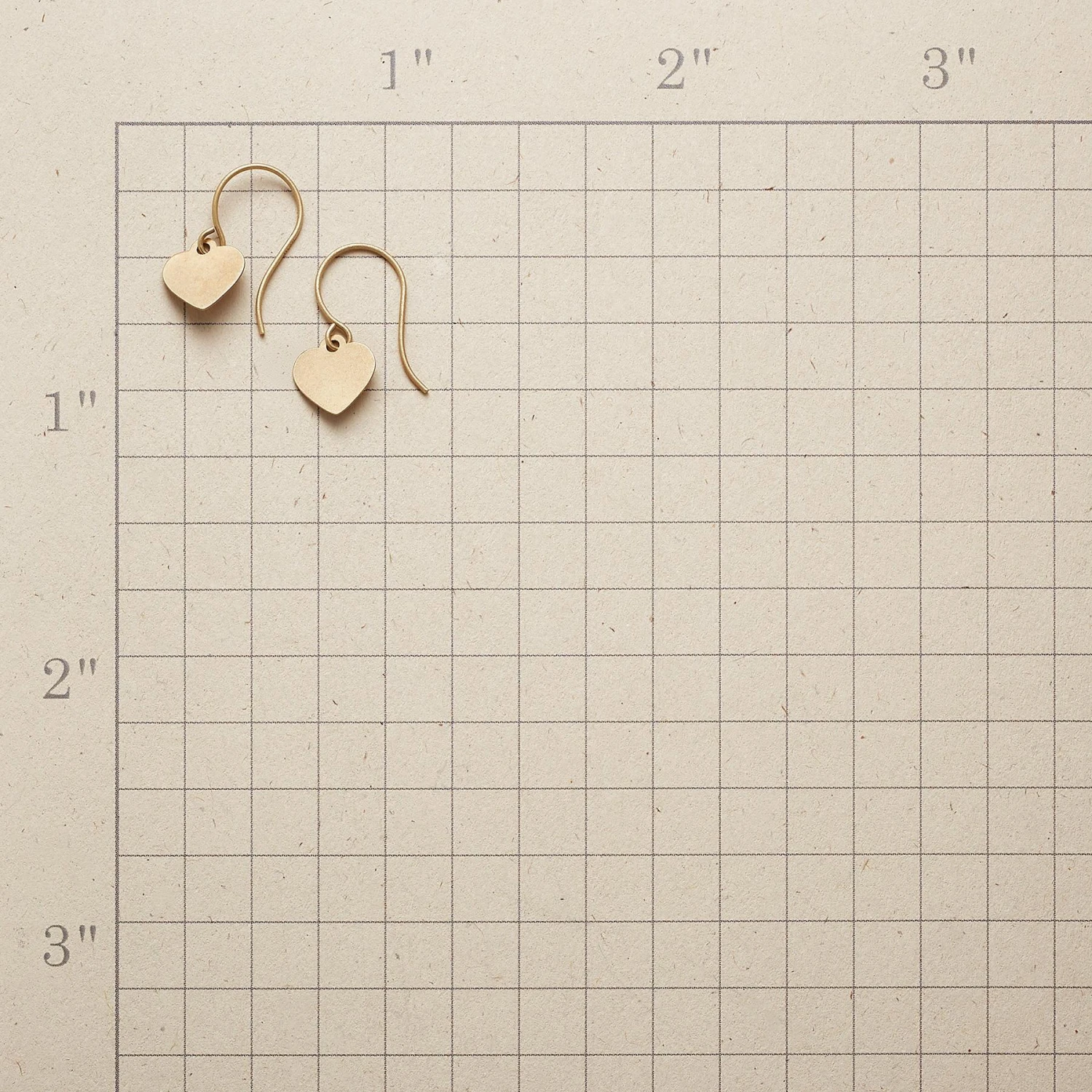 Thin enough to flit and flutter, our little hearts remain stalwart in 14kt gold. Handmade in USA with a subtle matte finish. Exclusive. French wires. 5/8″L.