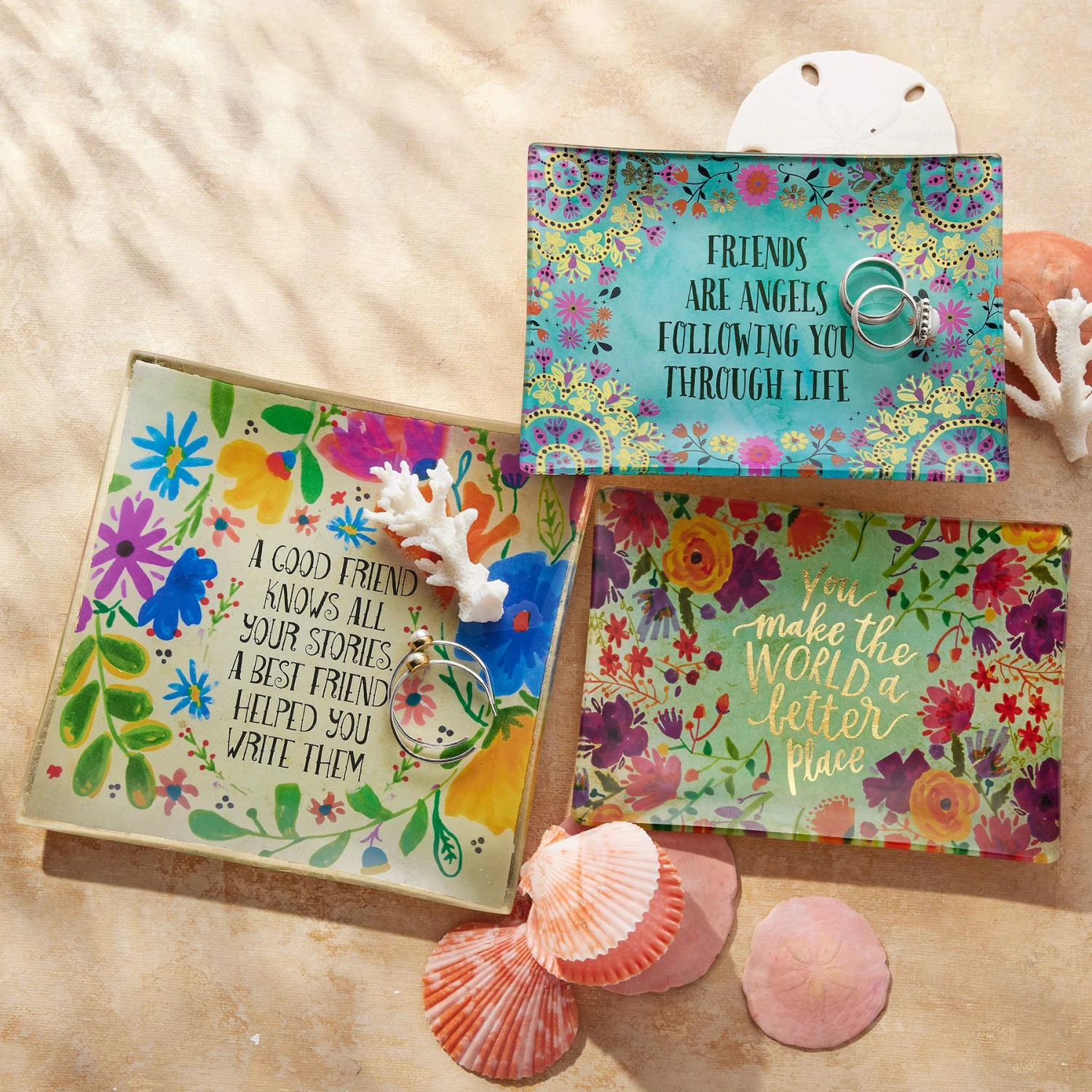 A sweet, handcrafted glass dish with gold accents, that’s a gift of love, friendship and encouragement for those near and dear. Imported. 5-1/2″L x 4″H.