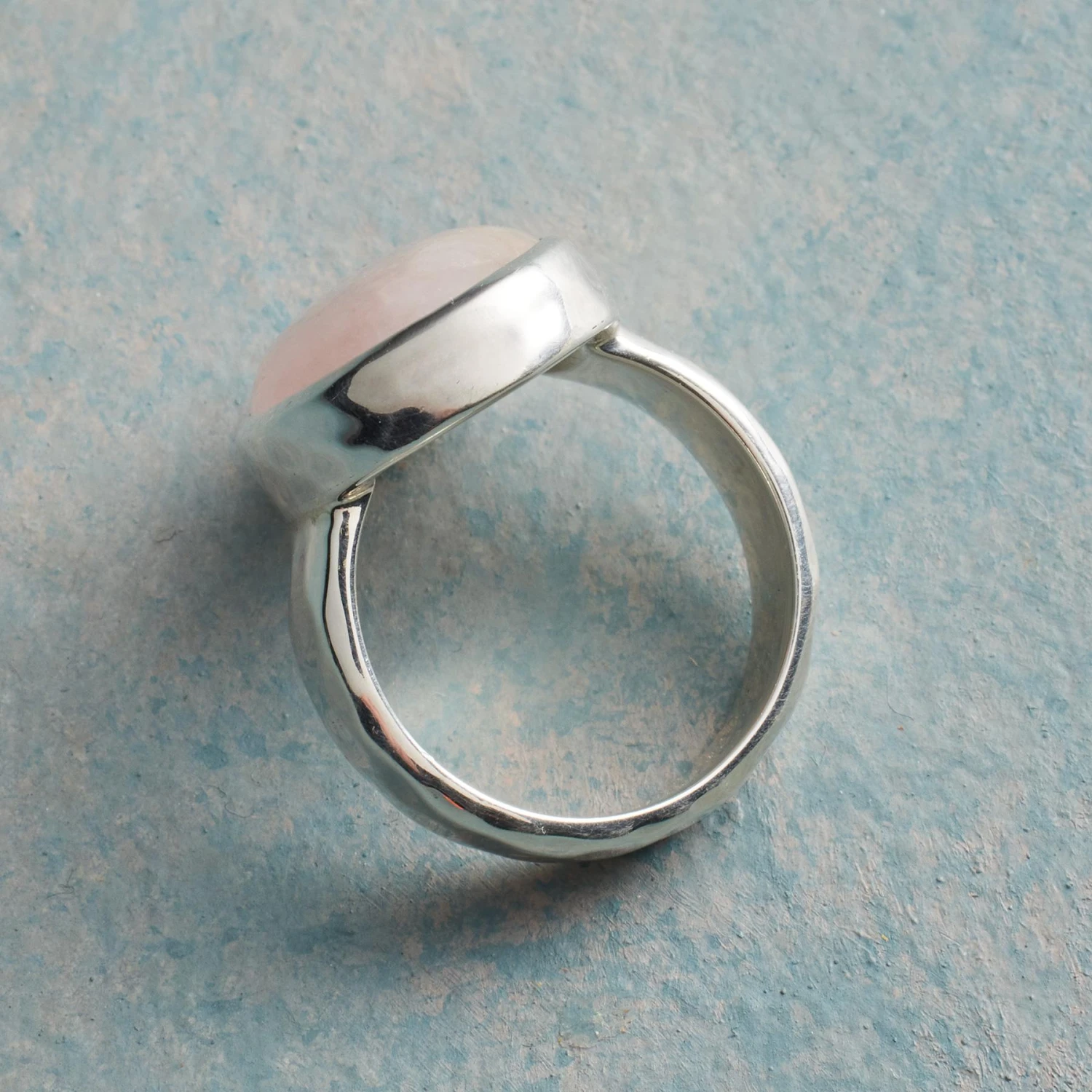 Hammered and polished by hand, sterling silver embraces morganite, its gentle blush a quiet beauty with great depth. Exclusive. Whole sizes 5 to 9.