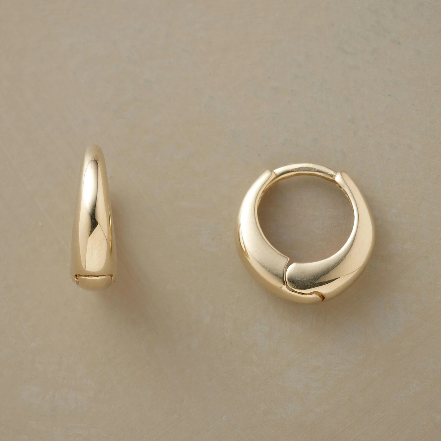 These tapered little Nava Zahavi hoop earrings in gleaming 14kt gold incorporate a precision mini hinge that locks them on the ear. A versatile style you may want to wear daily. 1/2″L.
