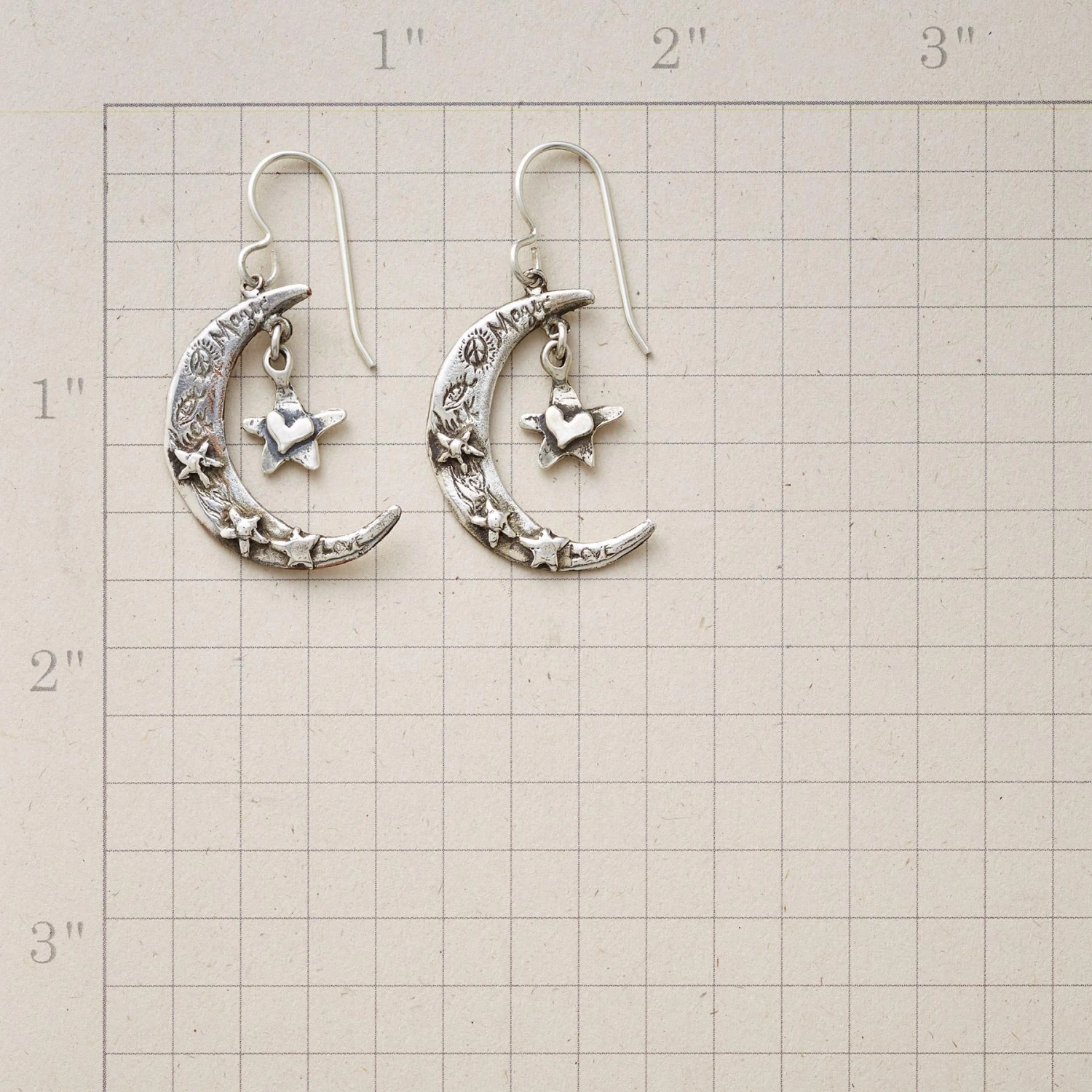 Stars emblazoned with hearts swing and sway from Jes MaHarry’s ‘Heartfelt Moon’ earrings, the crescents engraved with “Follow your heart” on back. Sterling silver; French wires. Exclusive. Handmade in USA. 1-1/2″L.
