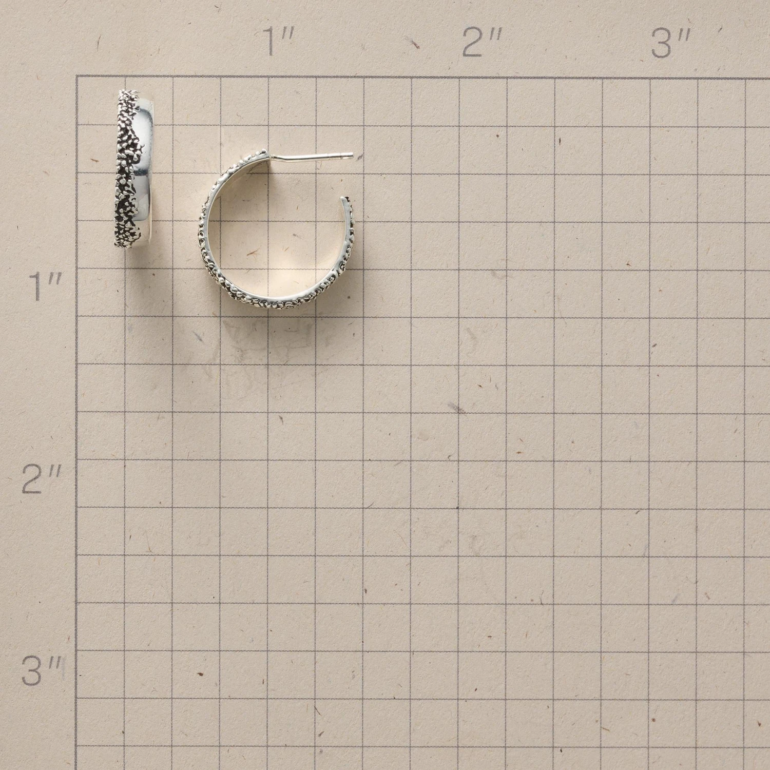 Oxidized granulation beading lends unique texture and striking contrast to our polished sterling silver hoops. Posts. Handcrafted. 3/4″ dia.