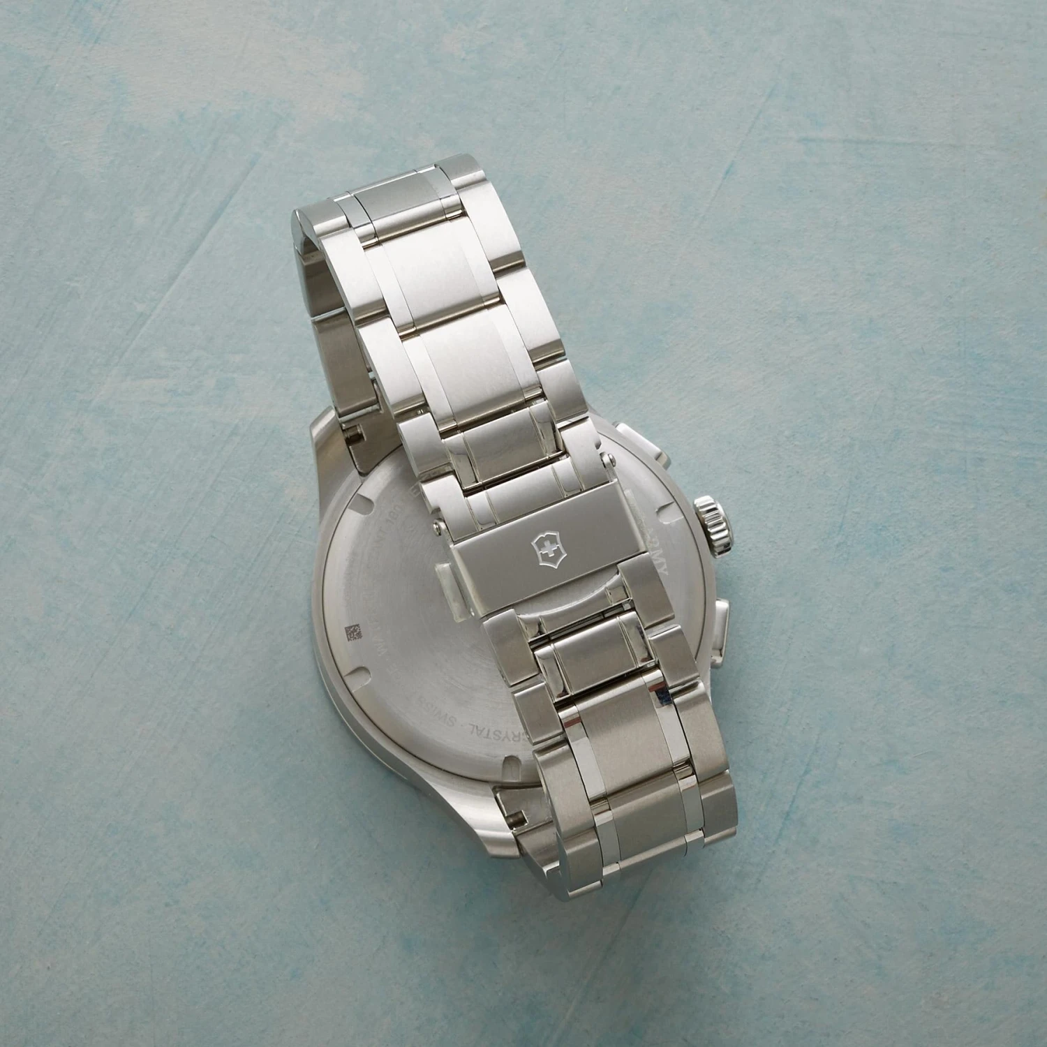 Understated style meets sport-focused functionality in our exclusive Victorinox Swiss Army® watch. Water resistant to 300m. Stainless steel bracelet and push-button clasp. Fits 7″ to 9″ wrists; 1-3/4″ dia.