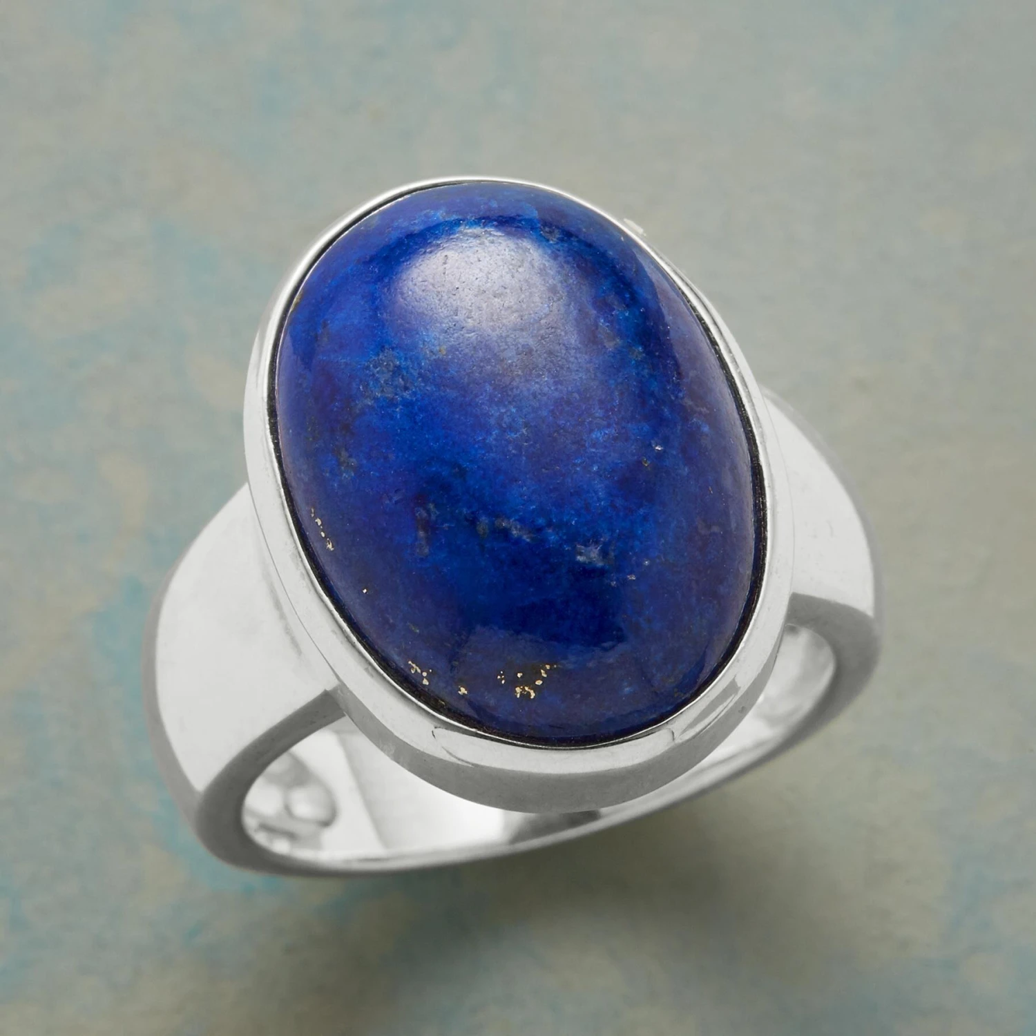An impressive dome of lapis crowns our sterling silver ring. Handmade exclusive. Whole sizes 5 to 10.