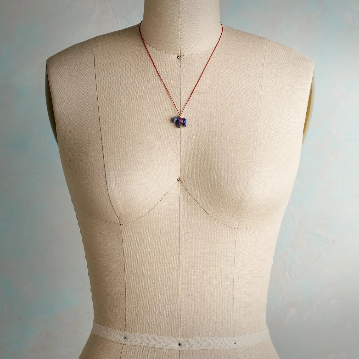 Jes MaHarry names her carved lapis figurine after her own horse, Mondo, the stout charm suspended from woven red nylon with a sterling silver bead. Exclusive. Handmade in USA. Lobster clasp. Approx. 18″L.