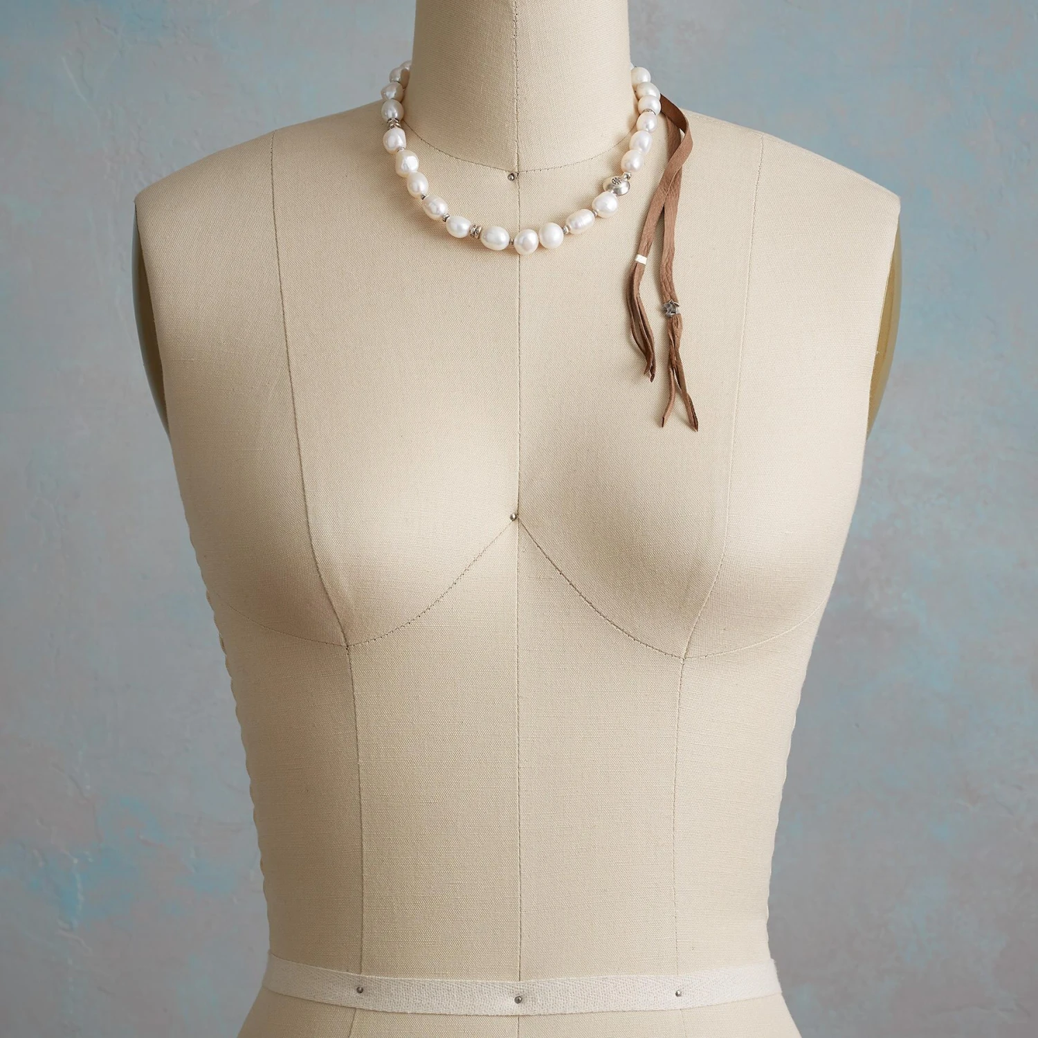 Etched sterling silver beads float among luminous white cultured freshwater pearls, each beautifully unique. They’re tethered by leather laces that adjust with a sterling slider. Handcrafted. Exclusive. Approx. 31″L.