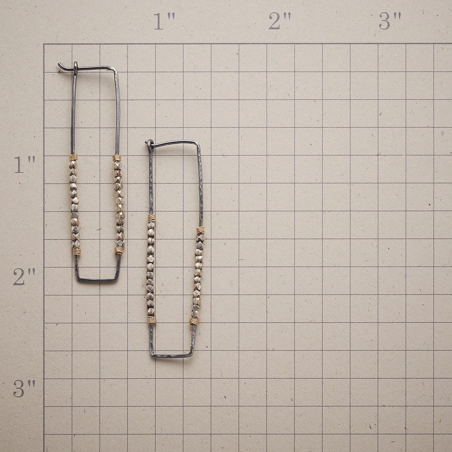 Squaring the circle, Dana Kellin weaves on rows of faceted beads. Sterling silver and 14kt gold-filled wire. Self locking. Handmade in USA. 1-7/8″L x 1/2″W.