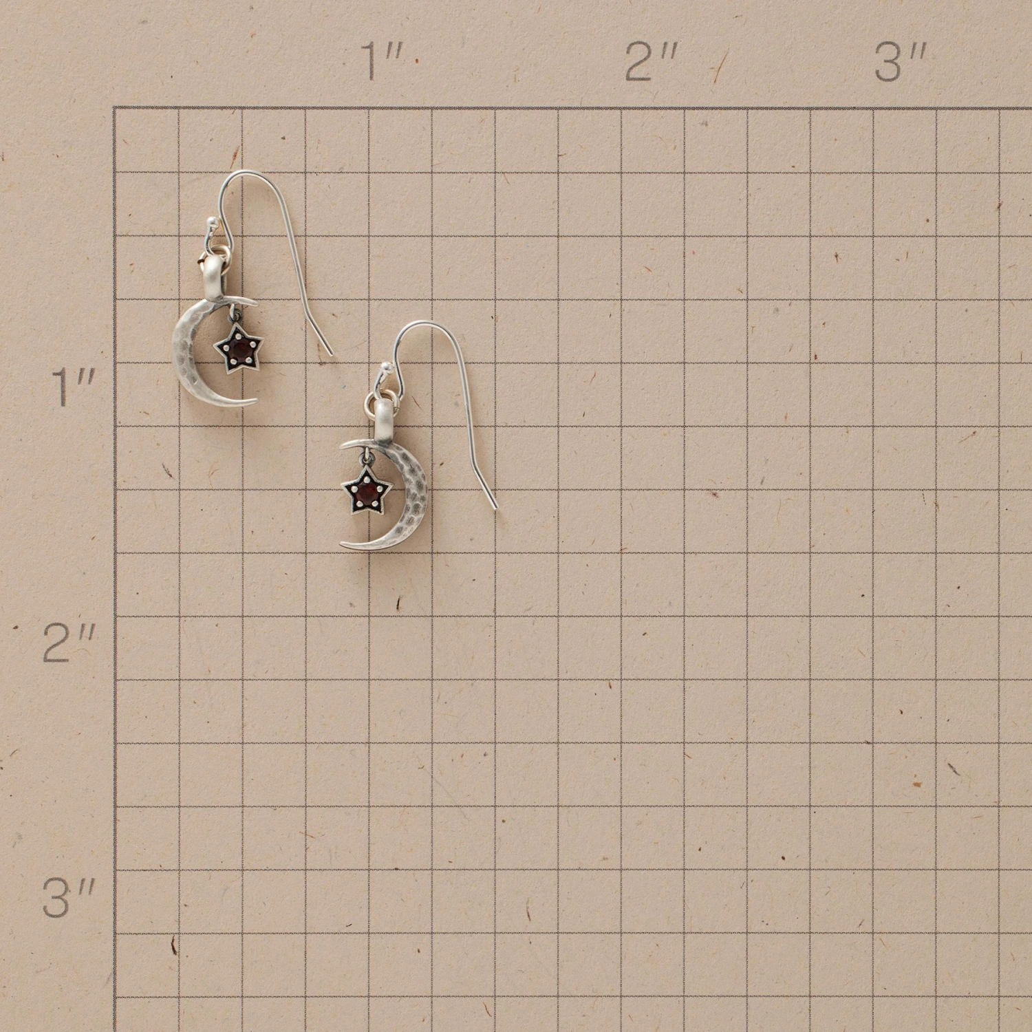 Set with the birthstone of your choice, a star twinkles in the embrace of the crescent moon. Handcrafted of sterling silver with a soft matte finish, the customized charms hang from polished sterling French wires. Handmade. Exclusive. 1″L.