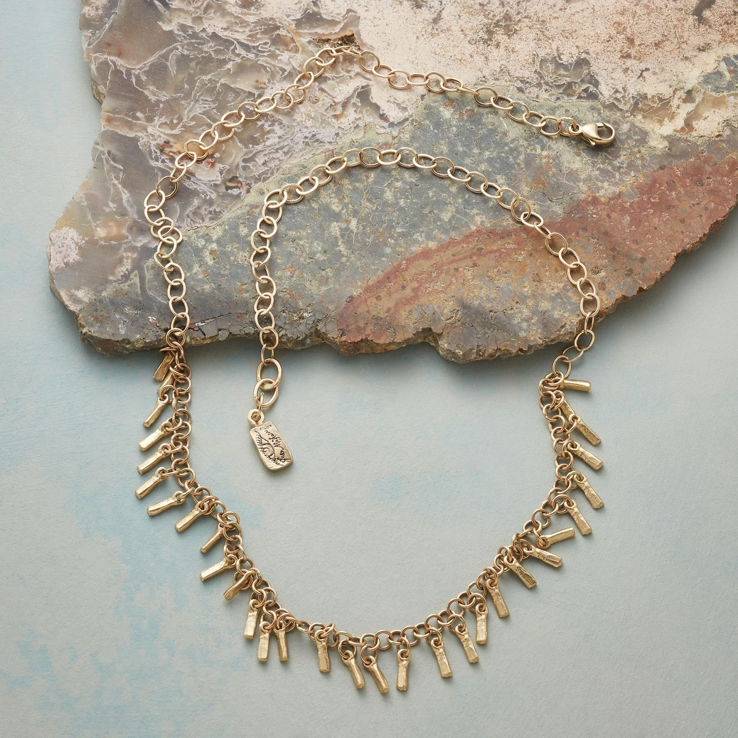 Wonderfully irregular tab charms, each a tiny ray of sunshine, are suspended in an arc from oval links on our ‘Soak Up the Sun’ necklace. Sundance exclusive handmade in USA by Jes MaHarry; 14kt gold. Lobster clasp. 18-1/4″L.
