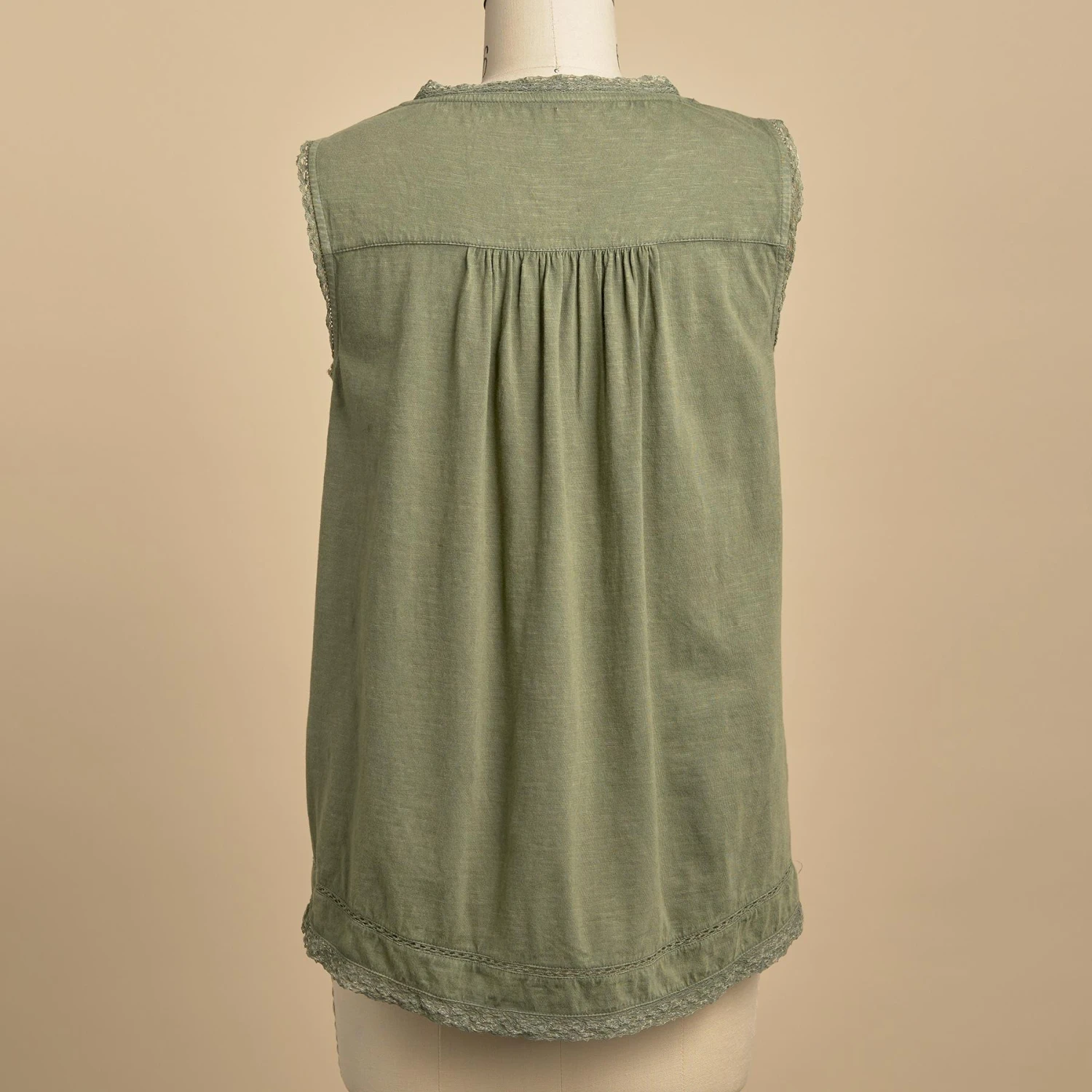 Laundry button-front, mixed knit and woven top with lovely A-line shape, lace and eyelet detail, pintucks, shirring. Cotton. Machine wash. Imported. Exclusive. Sizes XS (0 to 2), S (4 to 6), M (8 to 10), L (12 to 14), XL (16 to 18), XXL (20 to 22). Approx. 25″L.
