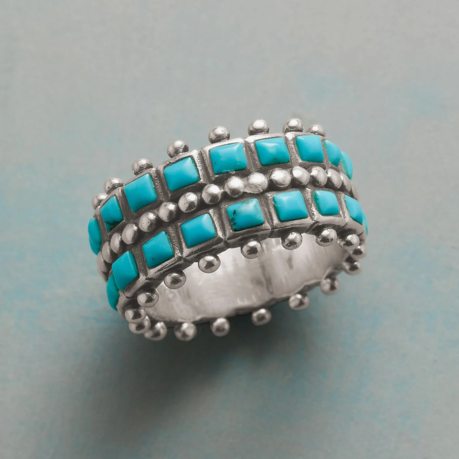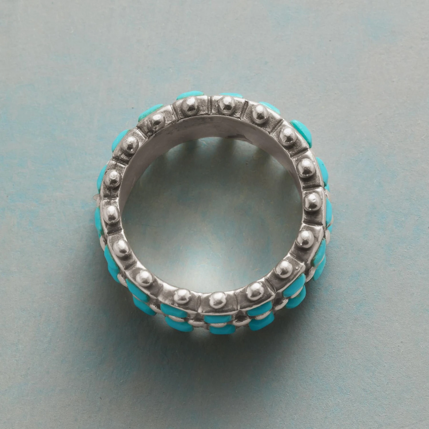 Our turquoise and sterling silver ring circles your finger with a pebbled path and fine beaded detailing for an artfully stacked look. Exclusive. Whole sizes 5 to 9.
